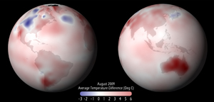 ആഗസ്റ്റില് സമുദ്രോപരിതല താപനില ഏറ്റവും ഉയര്ന്നതായി രേഖപ്പെടുത്തി എന്ന് NOAAയുടെ Asheville, N.C യിലുള്ള National Climatic Data Center റിപ്പോര്ട്ട് ചെയ്തു. 1880 മുതലുള്ള രേഖകള് പരിശോധിച്ചാണ് അവര് ഇത് കണ്ടെത്തിയത്.